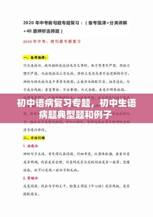 初中语病复习是提高语言表达能力和写作水平的重要环节。通过掌握识别和纠正语病的方法,以及采取有效的复习策略,初中生可以逐步提高自己的语言表达能力,为未来的学习和生活打下坚实的基础。
